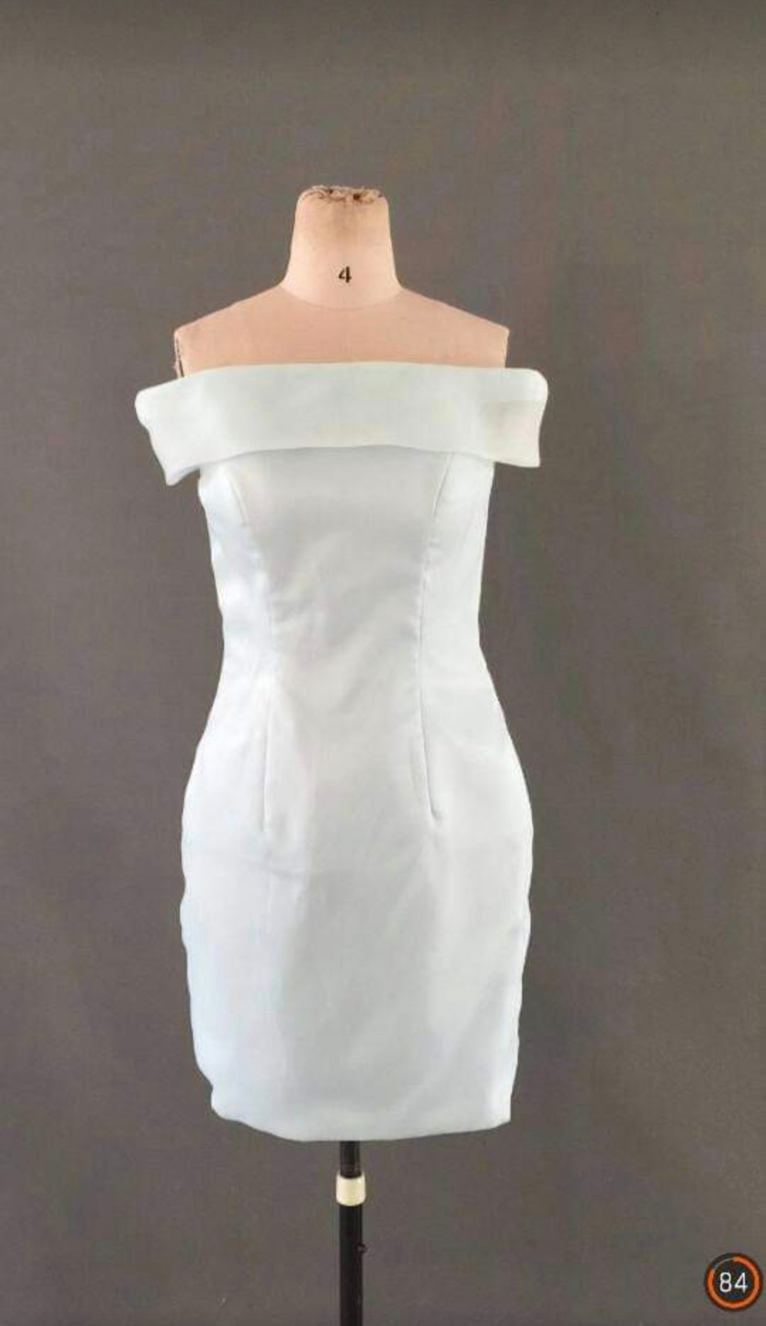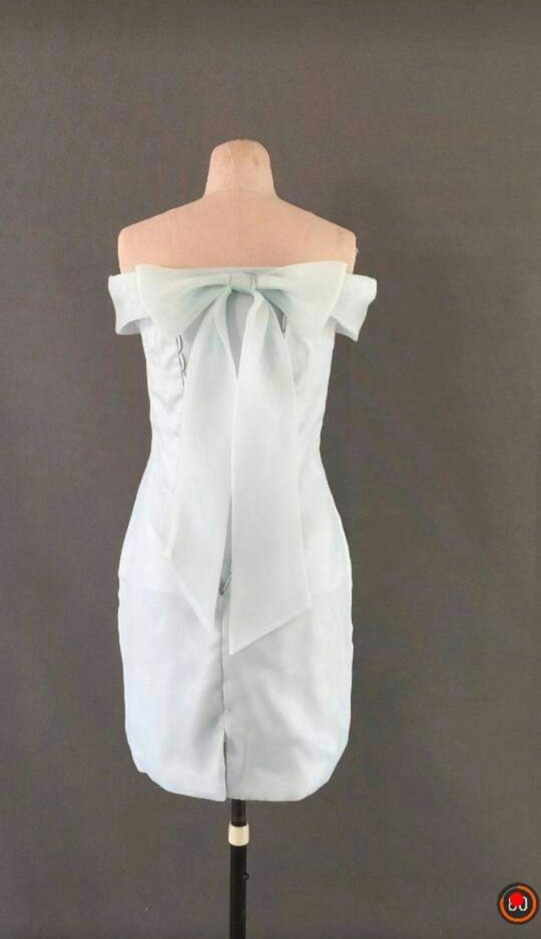 ミントグリーンのオフショルダードレス(バックリボン付き)