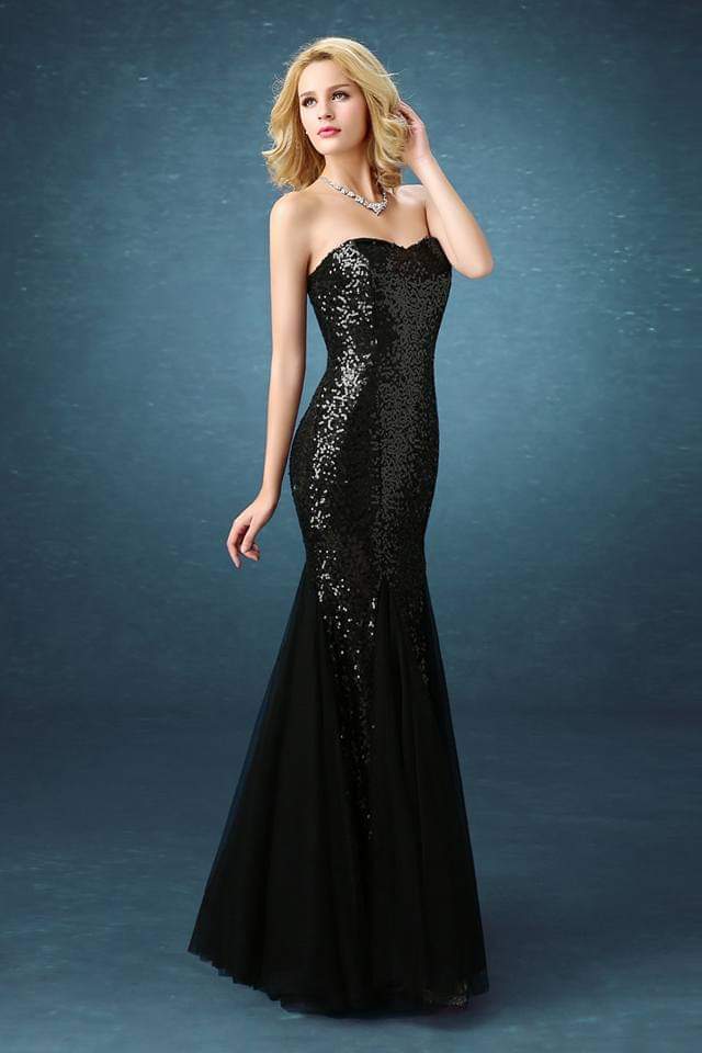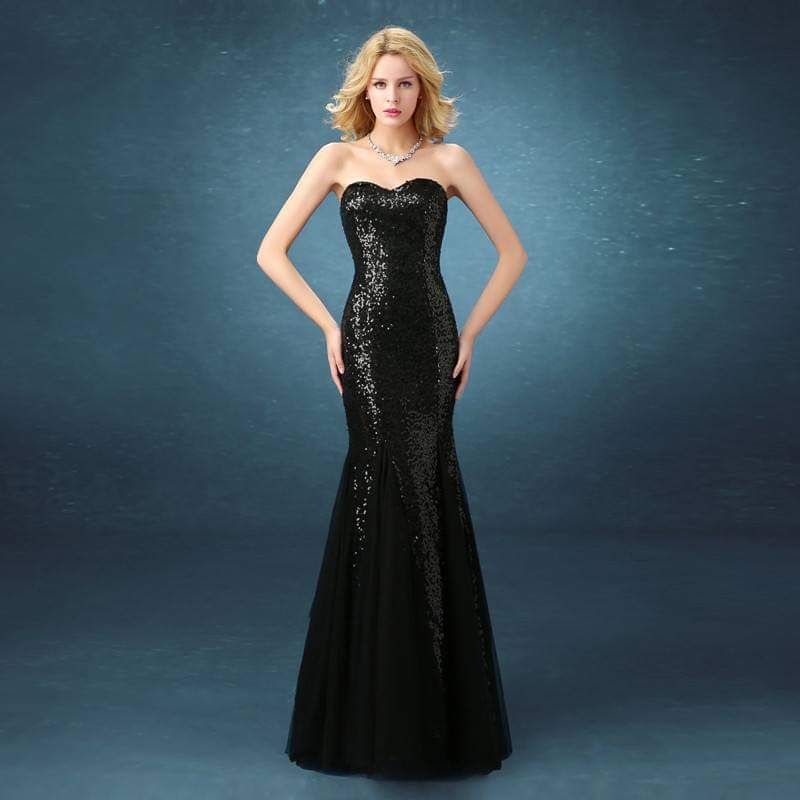 ชุดราตรียาวทรงหางปลา เกาะอกสีดำ ปักเลื่อมระยิบระยับ